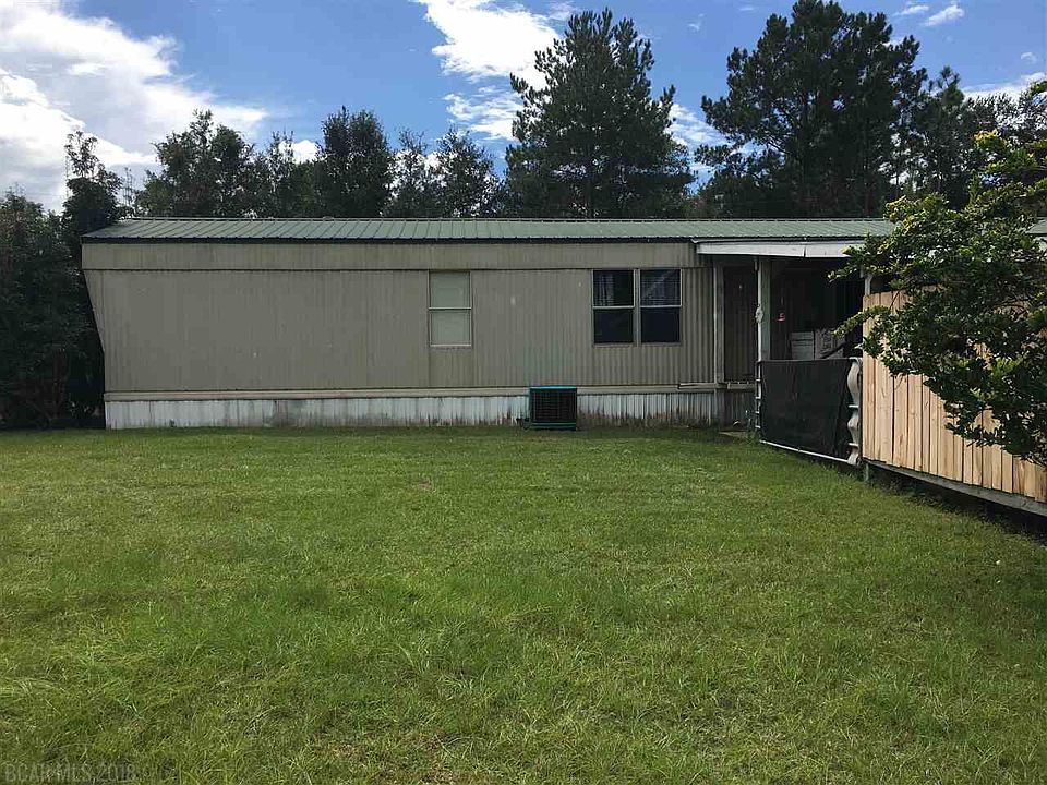 Secluded 16 x 80 mobile home on almost 1 acre of land close to beautiful Magnolia Springs. This 1994 mobile home is a 3 bed, 2 bath home with attached workshop / carport. Great potential with good bones. 8 X 14 front deck and 8 X 8 rear deck. This private country setting is waiting on the perfect buyer to put down roots, or possible investment opportunity for rental income! The home is being sold as-is. Great home for first time buyer or investor! NEED NOTICE TO SHOW. APPOINTMENT ONLY. LISTING BROKER MAKES NO REPRESENTATION TO SQUARE FOOTAGE ACCURACY. BUYER TO VERIFY.