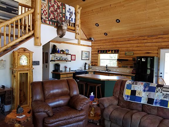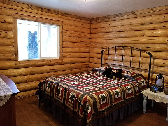 The ideal log cabin in the woods minus the bears! The large covered porch opens to a 3 bed/1 bath log cabin complete with wood stove tucked in the corner. Set on two acres with a large shop/ cement floor. Great for the livestock owner. A fenced in yard for animals with a stall already placed in shop. Big picture windows showcase the open floor plan with its custom wood finishes. The circular graveled drive fronts Two Rivers Road. The shop entrance is off of Calico Way. A new well installed in 2016.