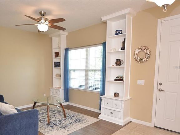 • Interior Features: Ceiling Fans(s), Master Bedroom Downstairs, Open Floorplan, Walk-In Closet(s), Kitchen/Family Room Combo, Solid Surface Counters, Built in Features