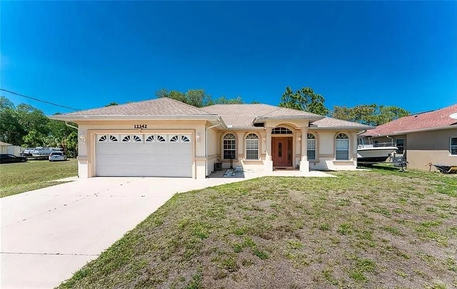Welcome to your new home in Warm Mineral Springs! This spacious 3 bed, 2 bath, with 2 car garage retreat offers the life of leisure and comfort you deserve. With an impressive living space throughout the split floorplan, this is a property that promises a room for every occasion. The luxurious owner’s suite with direct access to the lanai, offers two walk-in closets, and an ensuite bathroom that features a grand jetted soaking tub, twin sinks, and a walk-in shower. The third bedroom has its own private entrance and a kitchenette, perfect for use as an in-law suite. In the main living space, beautiful hardwood floors offer easy maintenance with soaring 12-foot ceilings overhead, accented with crown molding. In the kitchen, a tile backsplash, a built-in oven, cooktop, and granite countertops await the future chef. Family meals can be enjoyed in the dining area set under a high ceiling with a slider door that opens to the screened in lanai. On your lanai is a perfect place to relax at the end of your day to take in views of your private backyard that overlooks a nature preserve. There’s plenty of space to enjoy a summertime cookout or simply soak up the sunshine as you enjoy the Florida lifestyle. Your own piece of paradise awaits you!