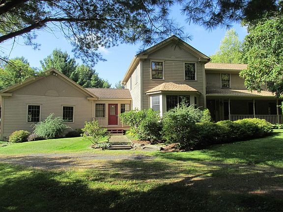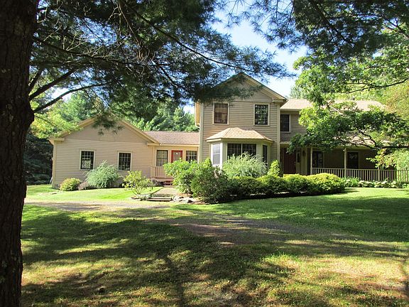 This beautiful contemporary colonial sis situated in the middle of your own private idyllic 9 acre park. Just moments from the Berkshires, Chatham or the TSP. The great room is dramatically lit during the day with its south-facing window wall and presided over by a beautiful wood-burning fireplace. The open kitchen (complete with granite counters, ss appliances and a gas stove) makes it easy to entertain and be part of the fun. Even a first floor bedroom! Wood floors and ceramic tile throughout. Three more bedrooms upstairs, including the master suite with its own jacuzzi bath. Outdoors there is a HEATED swimming pool which allows for an extended swim season, stone patio around the pool. Check out the virtual tour ... Very Good Condition