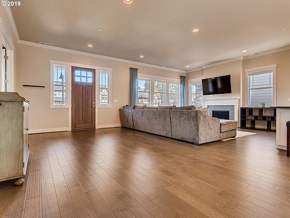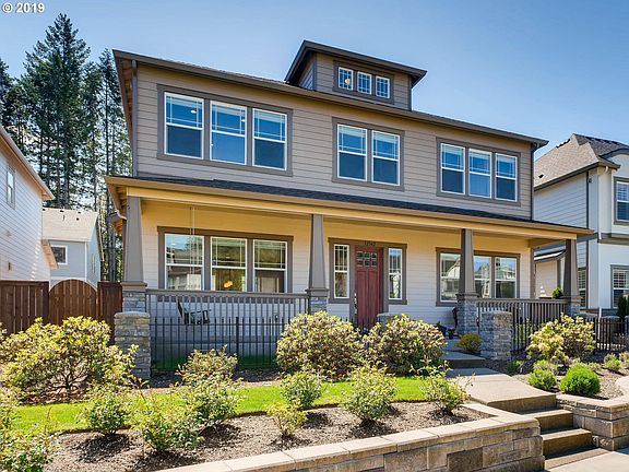 A beautiful covered front porch & swing welcome you to this Gorgeous Grande Pointe Villebois home. Large windows & high ceilings throughout this home feels light, bright & is perfect for entertaining. Quartz Counter Tops, White Cabinets, Hardwoods on Main. 4 beds + bonus up + den on main. Tucked into the trees of Graham Oaks Nature Park, this neighborhood is quiet but still part of vibrant Villebois.
