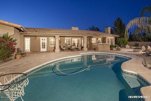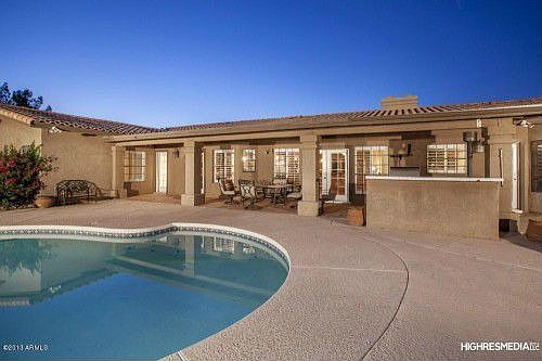 Situated on over an acre, this beautifully remodeled Arizona Ranch Estate boasts handsome finishes including gorgeous rich hardwoods, custom designer cbntry, granite counters, stained/stamped concrete floors, plantation wood shttrs, vltd ceilings, etc. The sprawling split flr plan spans 3940 SF w/4 bdrms 3 full baths, a formal den/office (w/built-ins), a full wet bar & 2-way frplc! Prfssnl award-winning (HGTV) chef's ktchn w/gourmet stainless applncs! Opulent mstr suite w/frplc, his/hers closets, lrg award-winning (HGTV) master bath w/multi-jet rain shower, relaxing jetted tub, distinctive concrete sinks, etc! Enjoy privacy & serenity among the outdoor living spaces w/multiple covrd patios, pool & built-in BBQ! Enough space for your equestrian dreams, a guest house or the perfect workshop!