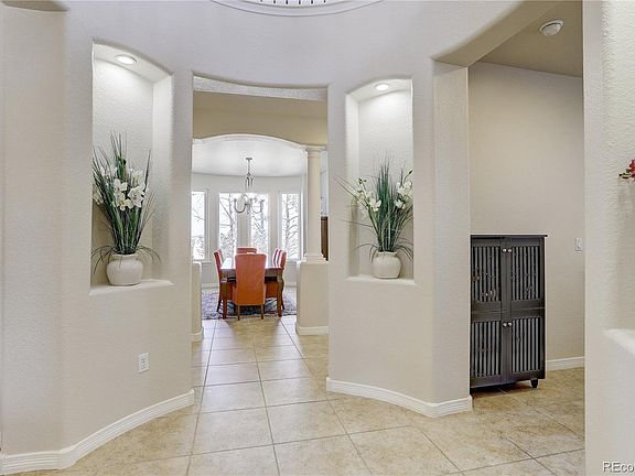 Come enjoy this beautifully updated six bedroom five bath home in Daniels Gate with a South facing driveway. Walk in and view the rotunda going up with an appealing architectural style. New paint in the interior and exterior, with new carpet and refinished wood floors and painted cabinets, replaced concrete tiles on roof, two new A/C units, New furnace, upgraded gas line, smart thermostat, new ceiling fans in all bedrooms, updated fixtures in all bathrooms. This home has a Main floor bedroom and full bathroom. The Study is warm & welcoming with a gas fireplace and French doors. The Dining Room is accented with picturesque windows of the Aspen & Pine trees backing to the Open Space & walking trails. Kitchen has stainless steel appliances with a dining nook and a built in desk that opens up to the top deck to sit and enjoy viewing the wildlife, The Living Room has a gas fireplace and open floor plan. Built in Kitchen buffet cabinetry with tiled accents. The Main floor laundry has a utility sink with washer & dryer. The Master Bedroom has a gas fireplace with large sitting area and two walk in closets. The coffee bar with sink and mini fridge is there to enjoy your morning coffee. The Master Bathroom has double sinks, large soaking tub and a European shower with beveled glass and accented tiles. There are three other bedrooms and two full baths on the upper level. The built in shelf with granite and extra storage which flows next to the rotunda has plenty of natural light for indoor plants.The Walkout basement has an entertainment area with a wet bar and fireplace. The basement bedroom has an attached full bath with natural light. An Exercise room to do your daily workouts. In addition there is plenty of storage in the basement and attic in garage. Turn on gas valve to outdoor firepit to enjoy the outdoors. This home has a lot to offer with over a third of an acre and is ready to move in and start making memories with a new family!