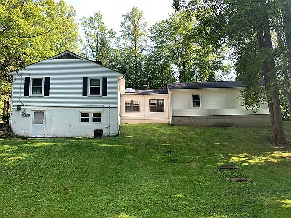 Welcome to your new cozy cottage located in Munson Township, situated on nearly 3.5 sprawling acres! This ranch with walkout basement is located in West Geauga Local School District, 10 minutes from Chardon, and 15 minutes from Mayfield. Less than 5 minutes from two Geauga parks. The all-original pine woodworking is truly unique and warms the entire home. The great room boasts beautiful beams and a large river rock feature wall with a fireplace. The eat-in kitchen is central to the home. The family room was updated in 2019 and includes an electric fireplace insert. Three bedrooms and one bathroom complete the main level. Three car attached garage. Forced air heating and cooling. New windows and furnace in 2018. New washing machine, dishwasher, and microwave in 2023. Infrastructure exists to install a whole home wood-burning furnace if desired. Full bathroom (updated in 2022), kitchenette, doored office, and the third fireplace are located in the unfinished walkout basement, an ideal setup to be finished for an in-law suite or a tenant. Separate lower level entrance. A second stone driveway leads to the back of the property. Please call/text Amanda at (440) 479-3518 for more information and/or viewings. By appointment only.