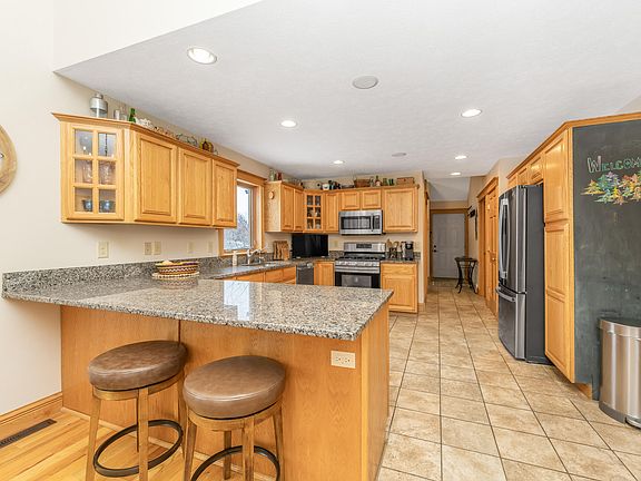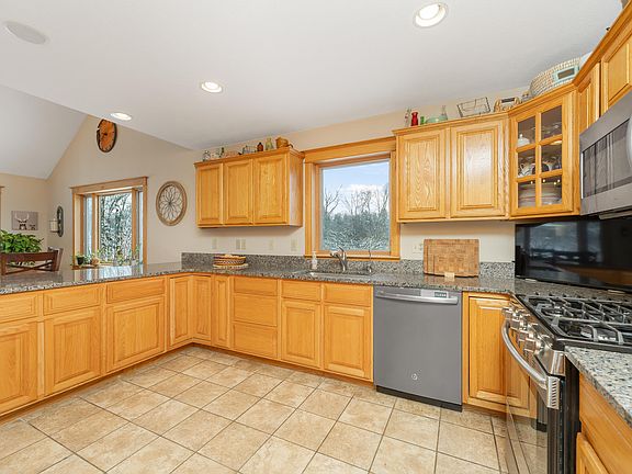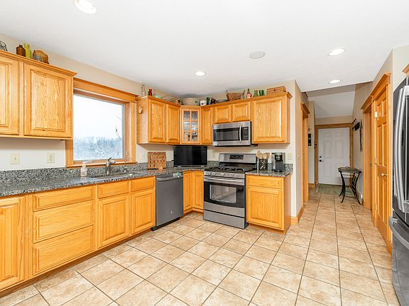 Private acreage with room to roam. This home has many options with an adaptable floor plan. Main floor primary bedroom has large windows for optimal light. The primary bathroom has radiant heat in the floor for the added comfort on winter mornings. The laundry is conveniently located. The kitchen has an open concept into the dining room. Lots of cabinet space and a newer solid surface countertop. The living room has a wood burning fireplace and has access to the covered porch where you can sit and enjoy the nature all around you. Upstairs are two bedrooms, each with dual closets, and a full bath. The lower level walk out could be used as a mother-in-law apartment or a place for a family member to prepare to spread their wings. There is a bedroom, full bath with available washer/dryer hook-ups and a full kitchen with full size appliances. The property is partially fenced for kids or animals. Newer mechanicals and roof. Whole house generator for peace of mind.