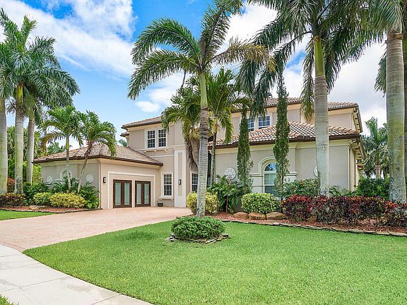 No expense has been spared in this fully updated, expansive Yorktown home. Located in the desirable neighborhood of Wellington's Equestrian Club, this home boasts 5 bedrooms, 6 bathrooms, den/office, loft, nanny/inlaw suite/media room/man-cave option, heated salt water pool and spa and two car garage. Two of the four garages have been converted into living space which serves as the nanny/inlaw suite/media room or man cave option adding additional living sq ftg to the home. Owners have completely redesigned the gourmet kitchen and have included Wolf, SubZero and Miele appliances along with custom cabinetry, countertops, center island and backsplash. Wide plank wood floors along with elegant chandeliers, custom ceilings/ moldings , LED hi hat lighting and volume ceilings draw you in asyou enter through the Custom Etched Glass front doors. Formal living room focuses on the beautifully designed stone, gas fireplace expanding over 20 ft. high along with the Impact glass windows that offer beautiful views and nice lighting throughout the house. Entire first floor is comprised of wood flooring, freshly painted walls, Master Bedroom with sitting area and Office/Den. Upper level allows for plenty of space with 4 additional bedrooms, nice size loft area, 3 full baths and laundry room. Wrought iron staircase and bridge accentuate and compliment the other amazing features of this home. Exterior of home has outdoor kitchen area, covered and closed in patio/living area, salt water, heated pool and spa, full home generator, custom landscaping including beautiful Palm Trees and Caloosa Hedge, expansive backyard area equally almost 1/2 acre and full home generator. Natural gas is located throughout this neighborhood, 24 hr. manned guard gate, recreation facility/clubhouse, lighted tennis courts, bridle paths and close proximity to all Equestrian venues, A rated schools, shopping, turnpike and more. Reverse Osmosis system, tankless Gas HW Heater, All 3 AC units replaced in last 18 months with UVA lights and Nest thermostats, security cameras, motion detector sensor lights and much much more. Do not let this one pass you by!