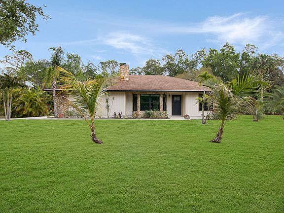 Lovely Jupiter Farms home on a desirable corner lot, paved road on both streets with a treelined sidewalk. The main home offers a split floor plan with 3 bedrooms, a screened in back porch area with pool creates an additional outdoor living space. There is a stand alone barn and oversized garage that's perfect for a workshop, animals, studio - the opportunities are endless.