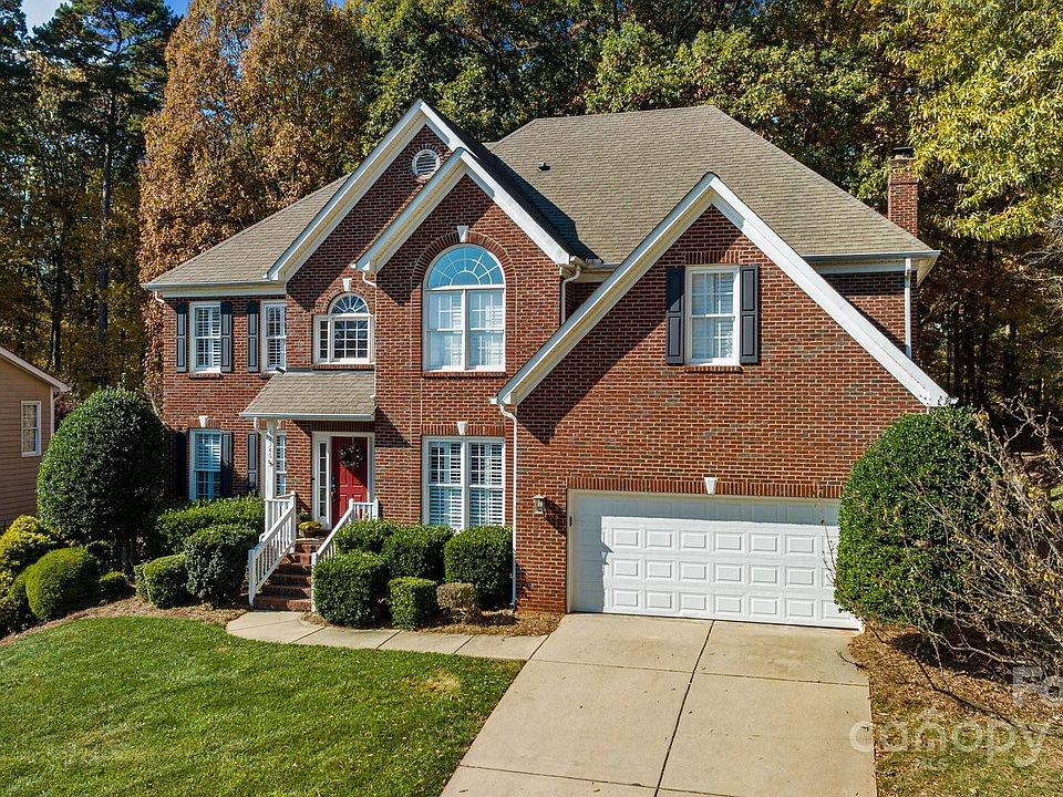 Stunning all brick home situated on a large, wooded lot. Chef's kitchen with a breakfast bar, quartzite counters and stainless appliances. Attention to detail throughout with luxurious finishes, tray ceilings and dual staircases. Six generous sized bedrooms with four full baths. Owner's suite boasts a stand alone soaking tub, separate shower and a private view of the wooded yard. Entertainers dream in the backyard with a generous patio, stone fire pit, lighted basketball court and full fencing. A screened porch and open deck allow for ample space for outdoor living at its best!