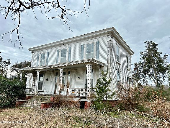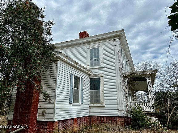''Hickory Hill'' is beautifully sited on the crest of a small hill just outside the small, historic town of Hamilton NC.  This historic home is an excellent example of craftsmanship and elaborate details of the c.1847 Greek Revival style with Victorian renovations.  The stunning entrance is typically complemented by a transom and side-lights.  While the porch floor is in disrepair and not being used, the lacy sawn-work balustrade, brackets and posts that remain are some of the best examples in the area.  Inside: The front door and the foyer are welcome you into a large center hall, handsome dogleg staircase and a delicate Eastlake filigree screen.  The front parlors on each side of the center hall have spectacular wide frame doors, large windows and a fireplace with the original mantles.  The dining room behind the front, right parlor has the finest display of Colonial Revival woodwork.  The handsome mantel, built-in china cabinet, chair rail, window seat and window and door trim are from the original period.  The large kitchen area on the back was added when the porch was enclosed.  Behind the parlor on the left is a bedroom and full bath.   Upstairs:  A large center hall/landing with triple front window offers room for a casual, relaxing area.  Four large rooms, 2 on each side, were the original private/bedroom areas.  All the second floor mantels are original.  Decorative pressed tin ceilings with a molded cornice was added to each upstairs room during the Colonial Revival time.  Outside:  A deteriorated, board and batten smokehouse still stands at the rear of the house. While the landscaping is overgrown, it's easy to see the potential of this established 2.47 acre yard.  House is connected to county water.  Back steps could be dangerous. Utilities can be turned on for inspections.