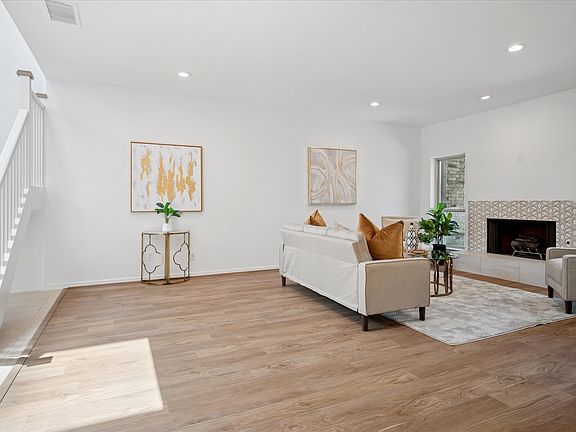 The primary suite is a true retreat, offering a sitting area, dual custom walk in closets, and a spa like bath with porcelain tile, his and hers vanities with Taj Mahal countertops, Brizo faucets, lighted defogging mirrors, a freestanding soaking tub, and a frameless glass shower with thermal mixer, rainfall, and hand shower. The secondary suite is equally refined with a new vanity, deep soaking tub, porcelain tile, and skylight. Additional highlights include all new LED lighting, modern ceiling fans, beautiful wood and tile flooring, a dramatic open tread white oak staircase, designer fireplace surround, Hunter Douglas shades, and a loft with built ins under natural skylights. The peaceful stamped concrete patio with planter beds invites outdoor living, while the oversized garage easily accommodates a full size crew cab truck. Miele washer and dryer, refrigerator and freezer in garage, and full sprinkler system are included. Every detail from Toto toilets to Baldwin hardware reflects thoughtful design and high end finishes, creating a home that is both sophisticated and welcoming.