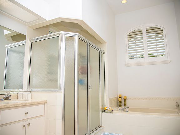 - Interior Features: Blinds, Pantry, Window Treatment(s), Wood Cabinets, Counters-Solid Surface, Plant Shelves, Plantation Shutters