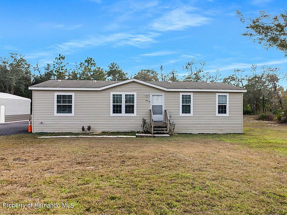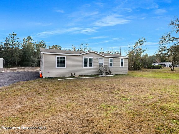 Active with Contract. New year, new home! You absolutely have to add this charming manufactured home to your must-have list in 2023. Sitting on a large 1.4 acre fenced corner lot, the 2019 doublewide is where rural comfort meets modern sensibilities. The open floor plan boasts crown molding, vaulted ceilings for additional volume, and stylish vinyl flooring in the living areas. Cooks will love the spacious kitchen with its pretty pendant lighting, bright cabinetry, center island, and chic stainless steel appliances, which include a deep barn-style sink and smart stove. The master suite is quite sizable; the ensuite master bath features a dual sink vanity, garden tub, and a separate shower. The 3 other guest bedrooms share a full size bath with a tub and shower combo. An indoor utility room means you never have to worry about doing laundry in a hot garage again. Grab your sweet tea or lemonade and head out to set a spell on the covered back porch. It overlooks the huge backyard dappled with shady trees. You can park your grill out here and host all your friends for summer barbecues, and there's plenty of space for your dream pool! A 10'x10' shed provides additional storage for your belongings. Need room for your boat, ATVs, or project vehicles? No problem. There's an extended 3-car detached garage that's been well-insulated; turn it into the workshop you've always wanted! Winding Waters K-8 and Weeki Wachee High School are less than 5 miles away. Weeki Wachee Springs State Park, with its small craft launch, waterslides, and famous mermaids, are only a short drive south. This property isn't far from US-19, so Homosassa, Tarpon Springs, and Clearwater are easily accessible. Do not miss your chance for a fresh start - get into this one before it goes!