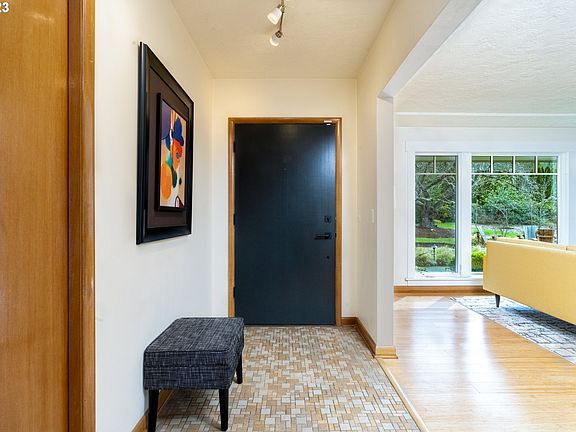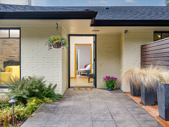 Located in Portland's highly sought-after Riverdale School District, this mid-century modern ranch with a walk-out basement is the ideal family home for those who enjoy outdoor activities, gardening, and entertaining. With over 4,000 square feet of living space on nearly an acre of land, 4 bedrooms, 4 remodeled baths (3 with radiant floor heat), an additional powder room, an office, and sprawling entertainment areas, this home provides ample room for every member of the family to work, play, and relax in comfort. Gazing through the large picture window, sip a cappuccino and watch as the morning's sunrise bathes your living room in warm natural light. On a chilly winter's day, cozy up to one of two wood-burning fireplaces. Enjoy hardwood floors, central air conditioning, and a spacious daylight basement featuring a large family bonus room (excellent for game nights), a media room with a projector for movie nights and viewing parties, and an original period-perfect mid-mod wet bar with pass-thru for drinks and snacks, creating the ultimate in-home fun zone for all ages. Out back, you'll find a deck on which to relax and unwind after a long day and an expansive, level backyard with plenty of green space for the kids to play. The front yard welcomes guests and family with a bocce court, ample seating areas and room for fire pits. Mature fruit trees (bearing apples, pears, plums, and pomegranates) and raised garden beds offer a fantastic opportunity for family gardening projects or homegrown farm-to-table meals. Just minutes from Lake Oswego's shops, dining, and popular farmer's market, as well as the 658-acre Tryon Creek State Park (offering plenty of outdoor recreation), this is a golden opportunity to own a delightful family home in one of Portland's most prestigious communities.
