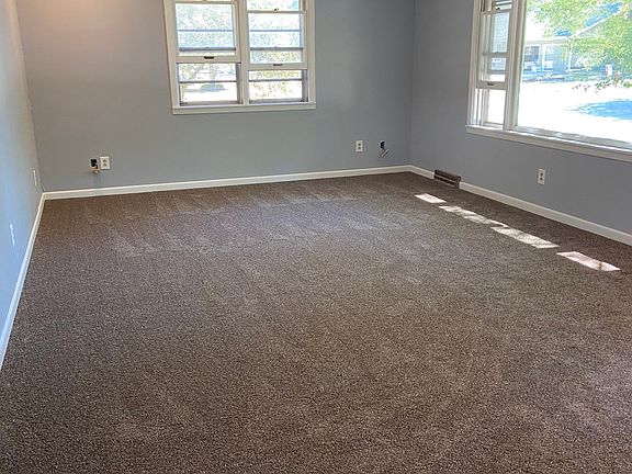 Great location, near the school. 2 large bedroom ranch style house with very large 2 car attached garage, large/utility room, many cabinets in the kitchen and more. The bedrooms feature large closets and there is extra storage in the basement. Owner pays utilities. No smoking. One small, well trained pet allowed with extra deposit/rent.
