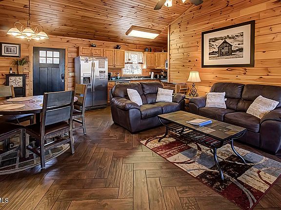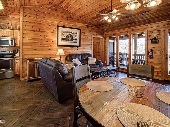 This beautiful Gatlinburg cabin has an awesome track record of great rental numbers, yet it doesn't show in the cabin. This is lovingly maintained with beautiful ceramic floors, solid surfaced counters in the well stocked kitchen, very accommodating living/dining area complete with see thru gas fireplace. Doors to the screened in covered back porch with hot tub. A very nice master with attached bath complete with rain shower head in the tiled walk in shower. There is a stack washer and dryer in the closet off of the kitchen on this level. The lower level has a spacious open area with pool table and arcade machine. Dual zone central heat and air keep each level at just the right temperature. The bonus room on this level also has an attached bath. You'll enjoy this deck for the privacy of the woods behind such a great retreat. You'll thoroughly enjoy your drives in and out to the cabin with the stellar mountain views on the way. No long driveway, flat parking and only 2 steps to enter. Add this one to your investment portfolio and you will be glad you did.