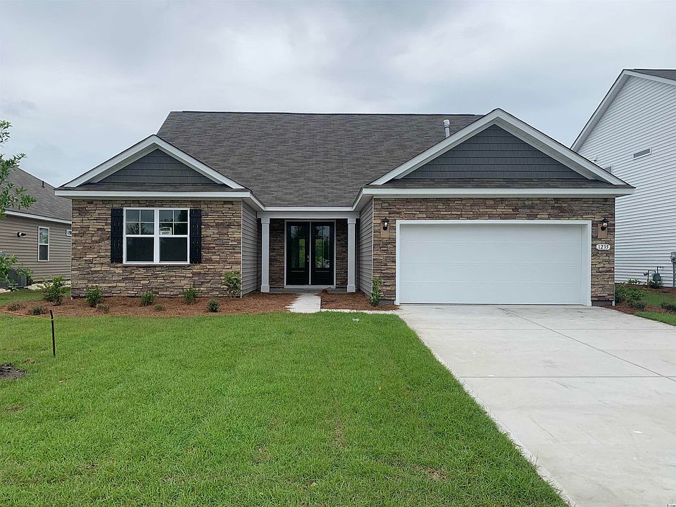 The popular Cumberland floor plan offers a very spacious, open design perfect for entertaining. Lots of windows and 11’ foot ceilings create an abundance of natural light! Walking to the front porch you will notice the grand double door entrance! Laminate hardwood floors throughout the main living areas. The kitchen offers Whirlpool appliances, granite countertops and an oversized island! The owner's suite is tucked away in the back of the home offering large walk in closet, double sinks and 5ft shower in bath. Upstairs you will find an additional bedroom, bath and large bonus room! This is America's Smart Home! Each of our homes comes with an industry leading smart home technology package that will allow you to control the thermostat, front door light and lock, and video doorbell from your smartphone or with voice commands to Alex This home is located in a newest phase in a natural gas community in Carolina Forest! The Parks of Carolina Forest is a picturesque setting of ponds, an amazing amenity center, and park of the majestic "Ten Oaks" with a walking trail to get to the Carolina Forest library. *Photos are of a similar Cumberland floorplan. (Home and community information, including pricing, included features, terms, availability and amenities, are subject to change prior to sale at any time without notice or obligation. Square footages are approximate. Pictures, photographs, colors, features, and sizes are for illustration purposes only and will vary from the homes as built. Equal housing opportunity builder.)
