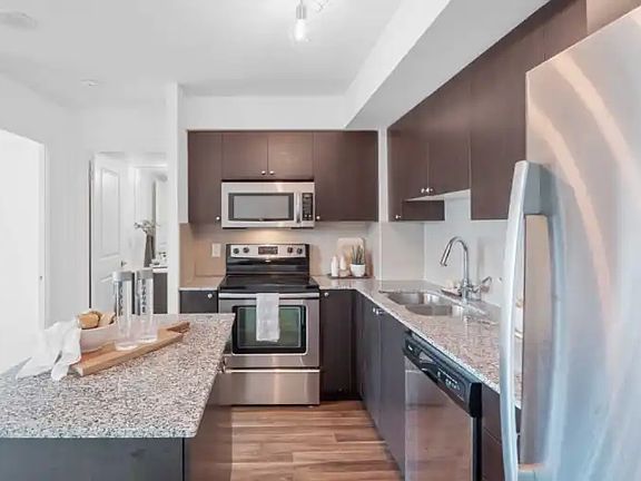San Francisco By The Bay Desirable Suite! Bright & Spacious One Bedroom W/ Parking & Locker, Clear Views Of Lake Ontario On The Large Balcony. This Suite Boasts Granite Counters, Ss Appliances, Cozy Built In Electric Fireplace & Ensuite Laundry. Ideally Located Steps To Pickering Go Station, Durham Transit