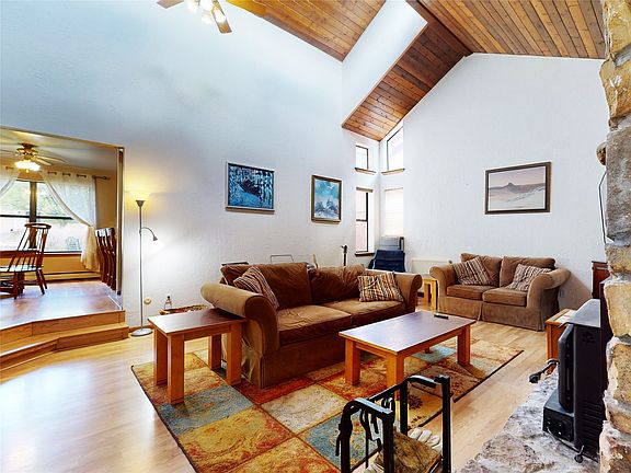 Beautiful home with open floor plan, moss stone fireplace and lots of natural light through the clerestory windows and many skylights. Just off the main living area is a sunroom with lots of South facing windows that provides passive solar heating in the winter and extra living or office space. Just off the sunroom is a deck that overlooks the lovely, landscaped yard with a play set and climbing wall. A flagstone patio area just off the deck provides a quiet space to relax. The kitchen has wood cabinetry and granite countertops and a tile backsplash. There is a breakfast bar and a separate dining area. The primary suite has a walk-in closet, and an attached bath with dual sinks and a beautifully tiled, jetted tub and separate shower. The primary bedroom has access to a separate area of the outside deck. There are two additional guest rooms and a second full bathroom with dual sinks and a separate bath and toilet area. Just off the beautiful entry way is a large laundry room. The laundry room also has access to the garage and has enough space to be used as a mudroom. The home is situated in a quiet area at the end of North Mesa. The large yard has no back neighbor allowing for privacy and access to additional parking at the back of the lot as well as the additional parking next to the driveway. This light and bright home in a quiet location is beautiful inside with a large and well-designed outdoor space.