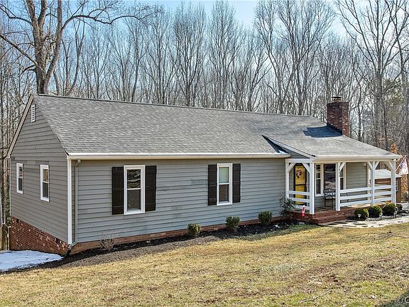 This BEAUTIFUL 3 BDRM 2 bath home on 2.62 acres in Goochland County is READY FOR NEW OWNERS! Step in from the 21X5 covered front porch to find the large family room w/5X2 coat closet, C/FAN, brick WBFP, CRWN moulding & LVP. Off the living room is the DR w/CHAND, CRWN & CHR moulding, LVP & French doors. The kitchen has plenty of wood cabinets, laminate C/TOP, tile BKSPL, SS APPL, LVP & 6X3 pantry. The ATT laundry closet completes this side of the home. The primary bedroom offers C/FAN, carpet, a 5X2 closet & ATT 7X5 BA with tiled floor and tub/shower. Bedrooms 2 and 3 both have C/FANS, LVP & 5X2 closets & share the 7X6 hall BA w/tiled tub/shower & single VAN w/storage. The 34X12 deck w/retractable awning, 20X10 shed and DET 20X18 garage finish the outdoor space. NEW HVAC 2021, NEW LVP 2021, FRESH paint 2021, NEW roof 2021. Located close to the interstate and minutes from restaurants and shopping, SCHEDULE YOUR TODAY!
