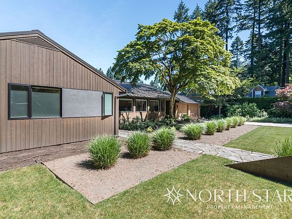 Come home to one of the most remarkable lots in the Country Club district of Lake Oswego. Located between Chandler and Lake Garden Court, this stunning mid century beautiful home has a park-like setting among some of the most regal and historic homes in Lake Oswego. Walking distance to First Addition, coffee, shopping, restaurants and the Library. Just a short golf cart ride to Oswego Lake Country Club and backing to the quiet water setting of Lake Garden Court! This 1946 beauty has been strikingly remodeled and reimagined, creating intelligent use of both intimate and lofty spaces with high end finishes. Be welcomed by crisp clean design and gorgeous hardwood floors flowing throughout the main level, uniting all the designated spaces. The impressive clear cedar vaulted living room opens out to a generous deck with a view of the gardens and large Lake Garden pond. The state of the art kitchen, for the most discerning of chefs, features an abundance of custom walnut cabinetry and offers top of the line appliances, including a Wolf range, an oversized Sub Zero refrigerator, wine fridge, double ovens, double sinks and large island for entertaining flow. The main level offers three bedrooms and second bath, including a private master suite retreat complete with a creative and spacious walk in closet/ dressing room and featuring a custom vanity while opening to a secluded patio garden. The lower area is like a separate home offering flexible space that opens out to the beautiful expansive yard and garden, complete with multiple raised beds. This provides optimal separation for guests or older family members. The family room is light and bright with a large window and slider and yet cozy with sound absorbing warm bamboo flooring. This level features two bedrooms and full bath as well as a huge laundry area with tons of storage. Forest Hills Swimming and Boat Easement and Paddleboard storage opportunity. Forest Hills Elementary, Lake Oswego Jr. & Sr. High. Parking: 3+ Dedicated No pets allowed. No Smoking or Vaping. North Star requires proof of insurance of $1M (one million dollars) before move in. An approved application does not constitute contract or lease agreement with the management company or homeowner.