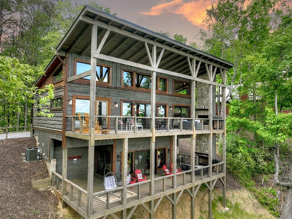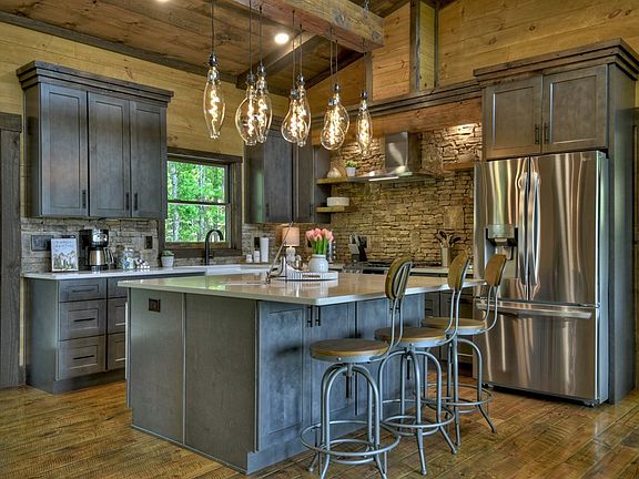 Mountain Modern Masterpiece – You'll find Custom finishes throughout this new construction 3BR, 3BA contemporary rustic style home nestled in the heart of Cherry Log Mountain w/ easy access to both downtown Blue Ridge & Ellijay in addition to access to amenities such as the Benton MacKaye Hiking Trail & access to private lakes within the community. You get the best of both worlds - a tranquil mountain escape with easy and gentle access to town. The views from both levels are breathtaking spanning layers of ^^mountains^^. Unlike anything you've seen before, this residence is a testament to meticulous craftsmanship, boasting the stunning mountain views & unparalleled attention to detail including the stone backsplash in the kitchen, wet bar on terrace, 3 FP's including 1 inside and 2 outside, lots of outdoor living spaces, walk in tile showers, reclaimed-like barnwood walls, circle sewn flooring, stainless appliances + more. As you step inside, the warmth of the hardwood floors & the unobstructed layered mountain view that is the backdrop, offers a warm & inviting atmosphere. The kitchen is a chef's delight, featuring beautiful, stained cabinets and top-of-the-line appliances. The master bedroom is a sanctuary, while the second bedroom offers both privacy and convenience with its own bathroom & living room access. The finished terrace level is an entertainer's dream, complete with a great room/recreation room, wet bar, & third guest suite featuring a unique rock shower all opening onto massive outdoor living areas on the covered porches overlooking these captivating mountain views. This home truly checks all the boxes for those seeking a custom, mountain retreat with modern comforts. Don't miss the opportunity to make this one-of-a-kind property your own! Professionally staged & furnished by Nathan Fitts & Team, North Georgia Home Staging, LLC.