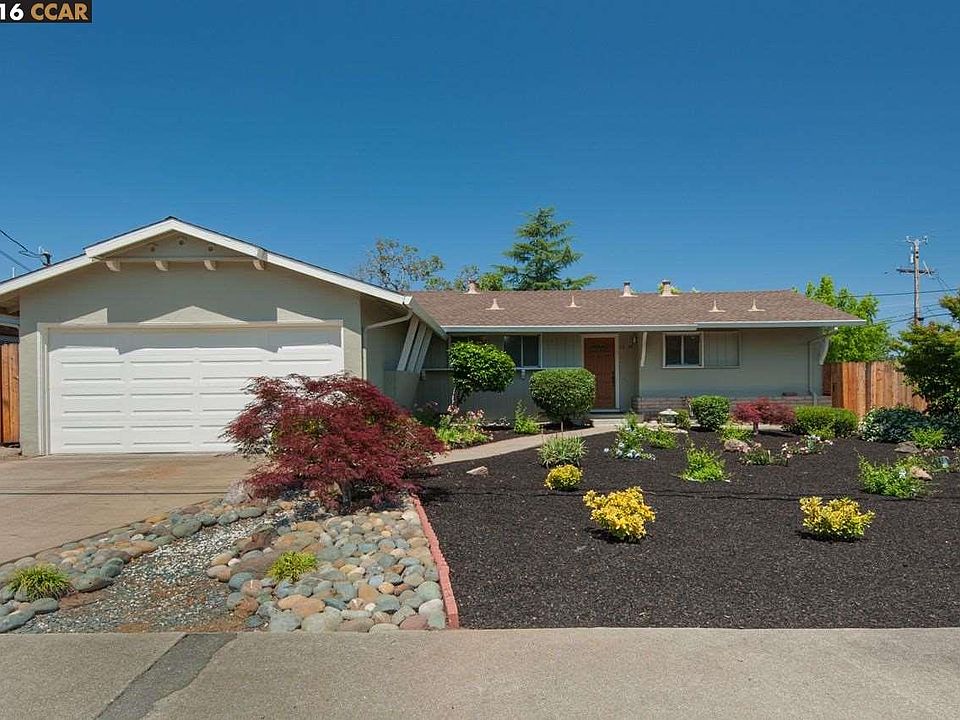 This ranch style home is located on a quiet court within the Sheffield Village community. The front yard of this large corner lot, has been professionally landscaped with drought resistance in mind. The backyard has a shaded patio and features Persimmon and Asian Pear trees, with plenty of space to garden.The original hardwood floors have been re-finished for your enjoyment and flow throughout the majority of the home. The kitchen has also been updated with new counter tops and Maple refaced cabinets, including easy glide pull out drawers. There is a new double built in oven, an electric range and hood and newer light fixtures. The flooring is an attractive tile that flows into the family room and dining areas. The living room is bright and spacious with a cozy fireplace.All three bedrooms have great closet space, a feature that many buyers desire. This home also has central heat and air, a 2 car garage and composition roof. It is close to shops, the Nature Park and the local community park with pool and tennis courts. Concord and Pleasant Hill Bart are easily accessible too.