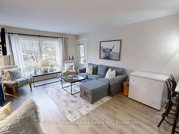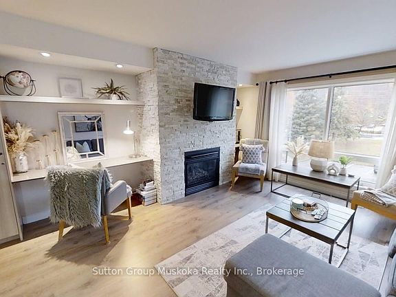 Top-Floor condominium located at Deerhurst Resort, Muskoka living at its best! Welcome to your perfect Muskoka retreat or year-round home! This beautifully updated one-bedroom, one-bathroom top-floor condo is located in the heart of the sought-after Deerhurst Resort. With a modern feel and quality finishes throughout, this unit is ideal for a first-time buyer, single professional, or anyone looking for a cozy cottage escape. The open-concept living space features a bright, airy layout with a natural gas fireplace, kitchen, desk, and more. Step outside to your private balcony with new aluminum and glass railings perfect for enjoying your morning coffee or sunsets. This building has recently undergone a full exterior renovation, including new siding, windows, doors, and balconies, offering peace of mind and long-term value. As an owner, you enjoy full access to resort-style amenities including: indoor and outdoor pools, beach, walking and hiking trails, tennis courts, fitness centre, plus discounts at some of the resort amenities and more! The monthly condo fee of $928.01 covers everything, including water, sewer, hydro, natural gas, cable TV, high-speed internet, and use of recreational facilities at the resort. Annual property taxes ($1,650). HST does not apply to the sale, and a quick closing is available. Whether you're looking for a maintenance-free Muskoka getaway or a smart investment, this unit checks all the boxes! Don't miss out schedule your private viewing today!