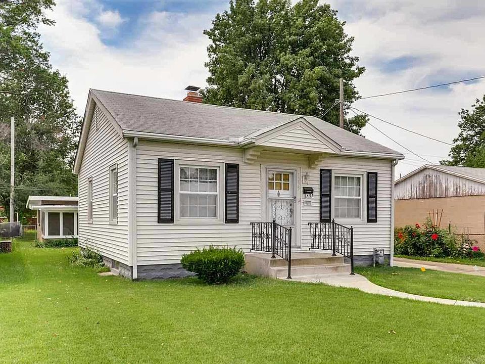Move-in ready 2-bedroom home located on Evansville's East Side. This lovely home offers so much original charm with hardwood floors throughout the living room, hallway, and both bedrooms, arched doorways, a built-in wall nook in the hallway, and 6-panel hardwood doors. The spacious, light-filled living room is the perfect spot to entertain. Lots of storage space in the eat-in kitchen, which features floor-to-ceiling cabinetry and plenty of room for a dining set. Both of the bedrooms offer large closets and beautiful hardwood floors. The full basement offers an abundance of storage space. There is a 1.5-car detached garage with an over-sized screened porch offering lovely views of the back yard. There is also a fenced-in area behind the garage. This lovely home is a must see!