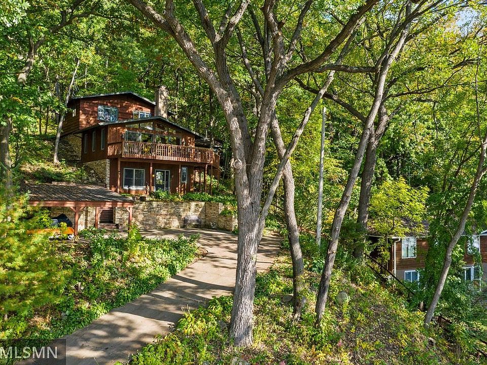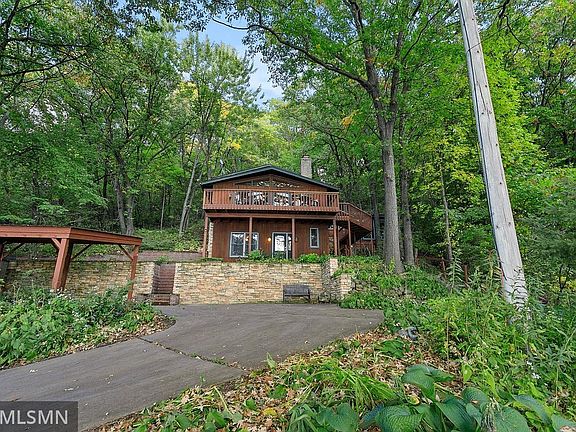 Act Quickly on this 3 Bedroom 3 Bath with 100 feet of St Croix River Frontage and frontage on private bay. Must see one of a kind custom built home situated into an incredible elevated hillside location. This stylish home features: vaulted ceilings, wood burning fireplaces, new carpet, refinished hardwood floors, skylights, gourmet kitchen, stainless steel appliances, slate tile, & built in wine cooler. The four season room is highlighted by a fireplace & in floor heat. The upper level offers two bedroom suites, each with a private bath, a third bedroom on the lower level also would make for a great home office. Enjoy endless sunsets and river views throughout the year. Affordable river frontage located within walking distance to all the restaurants and amenities of downtown Hudson - call today!
