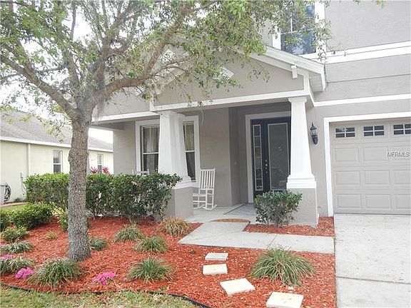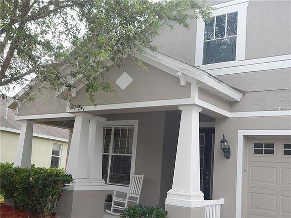 This home is located in the fast and growing area of Wesley Chapel in the gated community of Belle Chase next to the New Tampa area. 3 Bedrooms plus 2 full bathrooms PLUS an additional room which could be a den, office, play area or a guest room or a media room are a plus. Situated in a lot with a pond in the front and in the back of the house. Enjoy your early morning beverage or afternoons relaxing in the large quaint front porch. As you enter the glass front door, you are greeted by the foyer with a hallway adorned with three large niches to decorate to your own design. Installed flooring is Betawi Gray Wood Laminate. Double doors lead to the bonus room facing the front of the house. Next is the Living and/or Dining room area. Situated on the hallway is the Rotunda adorned with a beautiful flooring tile design in neutral colors. The kitchen comes equipped with all the appliances. Family room right off the kitchen. Master bedroom has double sinks, garden tub and separate shower with a large walk-in closet. 2 other bedrooms located on the other side of the house with a full bathroom. Near Wiregrass Mall, New Tampa Outlet Mall, Florida Hospital, restaurants, main roadways, shopping malls, schools, daycares and all everyday needed conveniences. NO CDD FEES. Schedule a showing to see this home today!