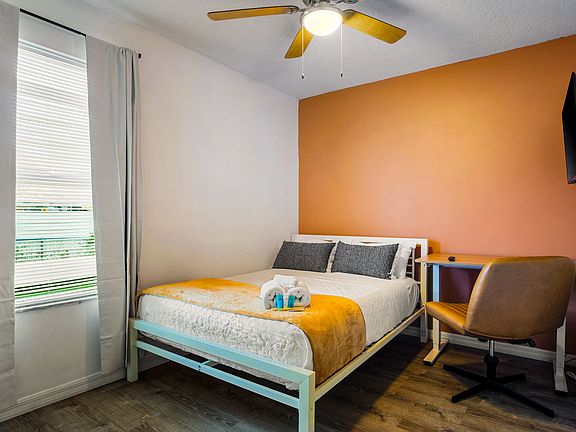 Welcome to your cozy retreat in Palm Bay, where convenience meets comfort and security! This beautifully furnished home offers a private room in a quiet, family-friendly neighborhood, providing a peaceful and welcoming environment. Co-living residents will share access to the kitchen, living room, dining room, and have a designated space in the kitchen and fridge for personal items. Located just minutes from shopping centers and stores, this property offers both accessibility and practicality for your daily living needs. The Available Room: Third Bedroom - The Friendly Nook Features: Full bed, shared full bathroom Contribution: $885/month (includes utilities and free Wi-Fi) A background check is required to ensure a safe and secure living space for everyone. Additional Details: Each person is responsible for cleaning up their personal items and maintaining their private room. Common areas are shared with all other co-living residents, and the property manager and owner retains full access to these areas. This home is equipped with smart features, including keyless entry for the front door and exterior security cameras of the property. Furnished room A background check is required. No smoking is allowed. No pets. Not suited for children. All utilities are included, covering electricity, water, and free high-speed Wi-Fi. Each individual is responsible for the maintenance of their individual room.