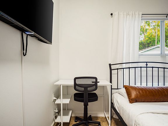 Welcome to your cozy retreat in Palm Bay, where convenience meets comfort and security! This beautifully furnished home offers a private room in a quiet, family-friendly neighborhood, providing a peaceful and welcoming environment. Guests will share access to the kitchen, living room, dining room, and have a designated space in the kitchen and fridge for personal items. As a welcoming gesture, we also provide a complimentary starter supply of shampoo, conditioner, and coffee. Located just minutes from shopping centers and stores, this property offers both accessibility and practicality for your daily living needs. The Available Room: Fourth Bedroom - The Corner Garden Features: Full bed, shared full bathroom Contribution: $800/month (includes utilities and free Wi-Fi) Parking: Street parking A background check is required to ensure a safe and secure living space. Additional Details: A one-time $80 cleaning fee is charged at the beginning of the stay, covering cleaning of the property upon your departure. We provide complimentary weekly maintenance of the common areas at no extra cost; however, each guest is responsible for cleaning up their personal items and maintaining their private room. This home is equipped with smart features, including keyless entry for the front door and security cameras at the front of the property for added convenience and safety. Month-to-month. A background check is required. No smoking is allowed. No pets. Not suited for children. All utilities are included, covering electricity, water, and free high-speed Wi-Fi. Each individual is responsible for the maintenance of their individual room.