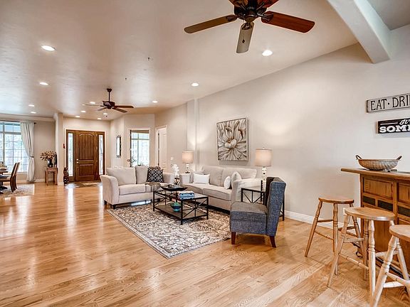 Stunning custom home situated on an amazing treed lot in Sage Port just around the corner from Bear Dance Golf Club! A sprawling open floor plan for main floor living. Very well maintained home and loaded with upgrades! This gorgeous home features hardwood floors throughout, stacked stone gas fireplace, vaulted ceilings, slab granite countertops, stainless appliances, a gas cooktop in the kitchen. Featuring 4 bedrooms + study, living room, dining room, kitchen, great room and laundry room on the main floor. Huge bonus room, over 1200 square feet, with full bathroom is perfect for guest quarters and/or entertaining. Unbelievable full unfinished basement, over 3600 square feet, awaits your finishing touch! AC rough in installed on both levels. Large deck off of the main living area is perfect for entertaining and enjoying Colorado outdoor living! Yard features invisible dog fence. This home features a serene setting and is a must see! Call today for your private showing!