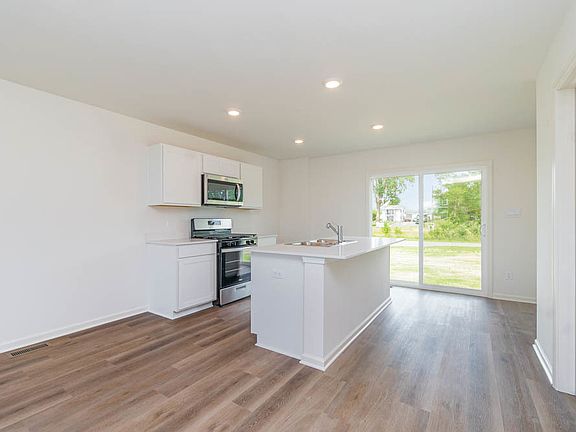 Find yourself at 1235 Inkberry Lane in Hampshire, Illinois, a beautiful new home in our Prairie Ridge community. This home is ready for a spring move-in. Homesite includes a fully sodded yard. The Sydney plan offers over 1,600 square feet of living space with a full basement, 3 bedrooms, a loft, and 2.5 baths. Coming through your front door, you walk into the open concept great room and kitchen space, making it the perfect entertaining space. Your kitchen features white designer cabinetry with quartz countertops and a large island a barstool overhang and pantry. Walking upstairs, you will find your large primary bedroom with a deluxe bathroom complete with a dual quartz raised vanity and walk-in closet. Enjoy the convenience of a second floor walk-in laundry room, additional secondary bedrooms, a full second bath, a loft, and linen closet. Impressive innovative ERV furnace system and tankless water heater round out the amazing features this home has to offer! Nestled in scenic Hampshire, IL, Prairie Ridge beckons homebuyers with its promise of serene living and modern comforts. Conveniently located near major thoroughfares including I-90, Route 20, and Route 47, Prairie Ridge offers residents easy access to urban amenities while maintaining a peaceful suburban ambiance. Enjoy the sense of community in a relaxed, rural setting located near shopping, dining and outdoor recreation areas. All Chicago homes include our America's Smart Home Technology, featuring a smart video doorbell, smart Honeywell thermostat, Amazon Echo Pop, smart door lock, Deako smart light switches and more. Photos are of similar home and model home. Actual home built may vary.