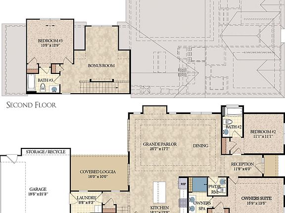 This two-story Courtyard Villa is a terrific option! 3 Beds/3.5Baths. Owners Suite with Walk-in closet and owners spa. Guest Bedroom #2 is located on the 1st floor with ensuite. Dining room, grand Parlor and kitchen are open. Kitchen has a center island. sliding glass door out to a covered loggia, side yare and then to the 2 car garage. The 2nd floor has a Bonus room, bedroom and full bath. Great options for this plan. Be our first to build this gem in the beautiful Kingfish Bay Community!