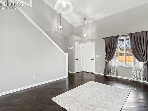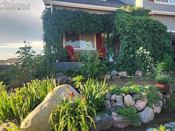 Lovely Home with Modern Updates You will love all the updates in this move in ready home where style and functionality go hand in hand. As you enter you will immediately notice the solid surface, lvp flooring which is installed in all main living areas, as well as the custom woodwork. This sitting area is a perfect separation from the family room. Walking into the kitchen you will enjoy the open floor plan as it flows into the dining area and family room. The kitchen is perfect for those who like to cook and entertain! Enjoy stainless appliances, a gas stove, a generous sized island for additional countertop space with seating, and a spacious pantry with functional storage that matches the cabinetry. The family room has matching shelving and a delightful fireplace mantel; lighting fixtures are updated in this room as well! Upstairs you have a loft with built in cabinetry which can work as a work area, library, game area, or an extra family room. Don't miss the shelving which 'secretly' opens into a safe room for your valuables. Laundry area is update and washer/dryer combo remains with the home. The primary suite is perfect as it has two separate closets and an attached ensuite. There are 2 additional bedrooms upstairs; all carpet has been recently installed. Basement is a walkout, and unfinished for you to add your personal touches. Outside is ideal for one who love to garden or just enjoy being outside year around: there is a hot tub, an aquaponic green house (coy can remain if desired) and a chicken roost area. Extended Side Parking. New Roof! Minutes away from I25, Fort Carson, Powers Corridor, and shopping. Heritage Subdivision includes parks and attaches to walking trails.
