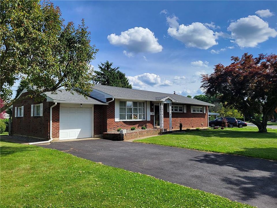 All brick, 3 bedroom, 2 full bath, Whitehall ranch minutes to playground, pool and shopping. This house has new windows throughout, a roof that was replaced in 2014 and gas furnace in 2006. The home is cooled by central air and heated by economical gas, hot water heat. Relax on the covered patio and enjoy the corner lot. Half the basement is finished into a large family room and the other half is left for storage and has a large walk-in closet, washer, dryer and all utilities. There is also a full bath in basement for your convenience. The one car garage is attached and for more storage there is a utility shed. The home comes with a clear Whitehall C.O. and is ready for you to put your personal touches on it. Showings start on Thursday June 16, 2022