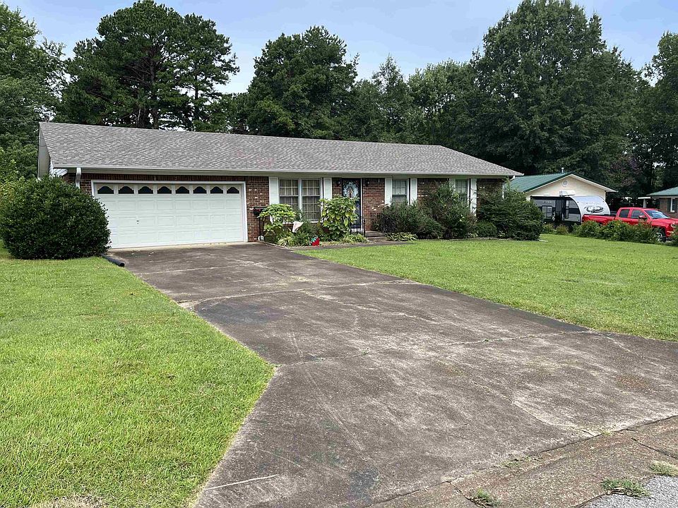 New listing. 3 BR 2 BA brick home well kept. Located near schools and the 45 Bypass. Large primary bathroom. Outdoor utility building. Nice yard and shrubbery. Ceiling fans. Oversized den. Covered back porch.