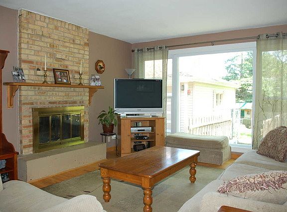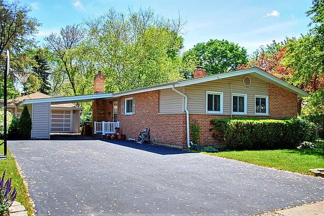 Move right in and enjoy! Beautiful eat in kitchen with oak cabinets and corian counters. Enjoy the Wood Burning brick fireplace in your living room. Door out to the lush back yard. Nice size rooms and plenty of storage. Walk out finished basement with 1/2 bath and bedroom. Newer windows, roof, driveway, siding, gutters, and insulation. Great schools, close to train, quiet end of street. (kids curtains do not stay)