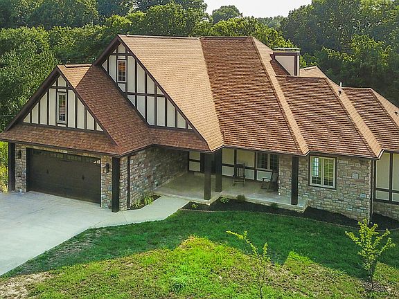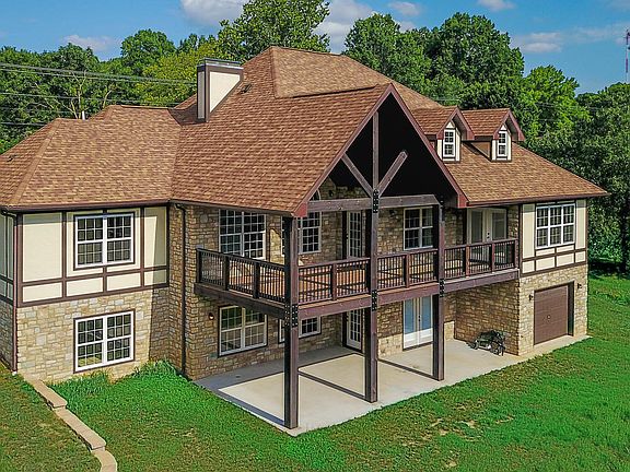 Come see this Beautiful Tudor style home with an open floor plan located near Ozark downtown! Newly built and ready to move in, this large home has a cozy feel to it. Extra deep walls keep this home well insulated. Living room features a vaulted ceiling with gorgeous wood beams. Kitchen has a large island and beautiful granite countertops. Large windows throughout the home give you a beautiful view of the wooded area on the acreage and the deer that roam there. Relax on the large covered deck and enjoy the sunset. Situated in a friendly community with a great elementary school nearby, this house is a must see!