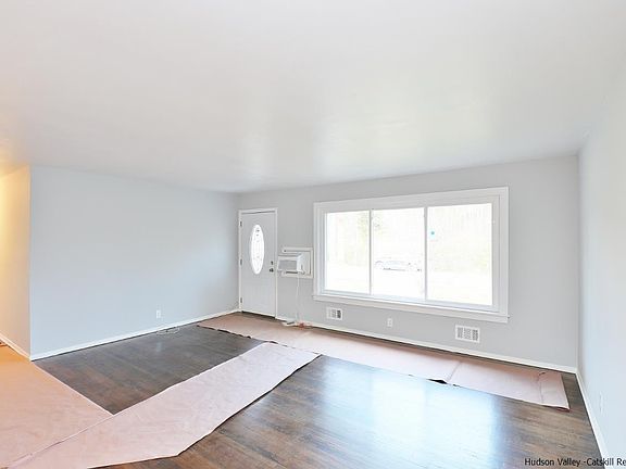 Look no further if you have been waiting for a turnkey property. This 1,133 sq. ft. three-bedroom one-bathroom ranch is ready for furniture! Updated within the year featuring refinished hardwood flooring, fresh paint throughout, renovated kitchen and bathroom, in addition to a new propane furnace. The living room greets you at the door accented with a large picture window and a cozy dining area. Towards the back of the home, overlooking the fully fenced back yard, is a modern kitchen with all new appliances, countertops, and cabinetry. There is no lack of natural light with plenty of windows throughout. Head toward the sleeping quarters where there is an original built-in cabinet faced with glass and three bedrooms. One being the primary suite having its very own private entrance into the bathroom. Large enough to accommodate an extra shelving unit or a small bench the bathroom will not disappoint! For even more convenience there is a separate laundry room that could double as a pantry or storage area with access to the one car garage and loft area. This is truly a must see just minutes to Uptown Kingston, the traffic circle to I-87, and Trailways Bus Station. Enjoy all Kingston has to offer!
