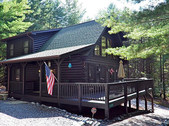 Nestled in the trees, this 2 bedroom, 2 bath log cabin offers a warm and inviting ambiance that will make you feel right at home. As you step inside you'll immediately notice the natural beauty showcased throughout. The open-concept floor plan seamlessly connects the living, dining, and kitchen areas, making it perfect for entertaining family and friends. The tranquil primary bedroom is a true retreat, with an ensuite bath and plenty of closet space. Wake up to breathtaking views of nature and start your day peacefully. The second bedroom also offers ample space and can be used as a guest room or a home office. Step outside onto the deck and take in the beauty of your surroundings. Enjoy your morning coffee, host a bbq, or relax and unwind while listening to the sounds of nature. Enjoy the tranquility while still being close to local amenities and attractions. Whether you're seeking a weekend getaway, VRBO, or a permanent residence, this log cabin is the perfect place to call home.