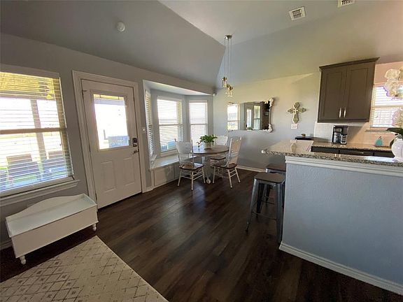 Beautiful country living on a 1 acre lot. Livestock welcomed with a fully surrounding fenced in yard with a pond in the back. A new 20x35 metal shop. An exceptionally upgraded 3 bed 2 bath home for sale in the highly desirable Ponder ISD. Enjoy the 8' stained wood fence for ultimate privacy in the back yard. The floors are beautiful distressed engineered laminate wood flooring with cork backing throughout. Open kitchen to family to breakfast nook and split master bedroom layout. Granite countertops, stainless appliances, nest thermostat, front door video doorbell, elegant exterior down lighting, huuggee covered back porch. This one has everything you want in country living just minutes from everything you need.