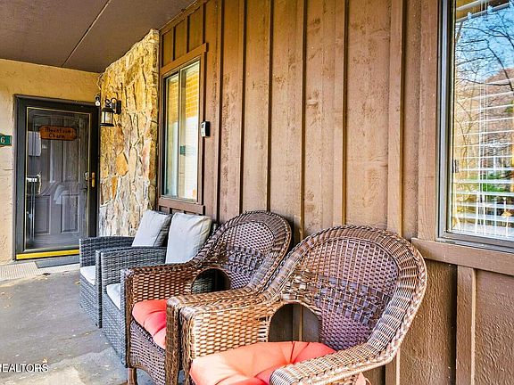 Welcome to Mountain Charm. This oversized three-bedroom, two-bath condo is situated in a great location just below Ober Gatlinburg and one of the Chalet Village pools. This first level unit enters near the galley kitchen with loads of cabinet space, granite countertops, and coordinated appliances. The open floor plan of the dining and living room offers plenty of seating and warmth from the stone wood-burning fireplace to relax after hiking in the Great Smoky Mountain National Park. The in-unit washer and dryer are a huge bonus for anyone who stays here. A sunporch off the living room expands the living space of this unit. The master bedroom has an ensuite bathroom with a tub/shower combination and custom tilework. The two other bedrooms access a second sunporch and share the second full bathroom. This unit has two dedicated exterior parking spaces and a garage space for those guests that have motorcycles or UTV's. The unit is about a 6-minute drive on clam paved roads to downtown Gatlinburg. This well maintained unit has a low HOA fee and is being sold fully furnished. Smaller condos in the complex have an income of 50K. This condo is competitively priced so call an agent and come take a look today.