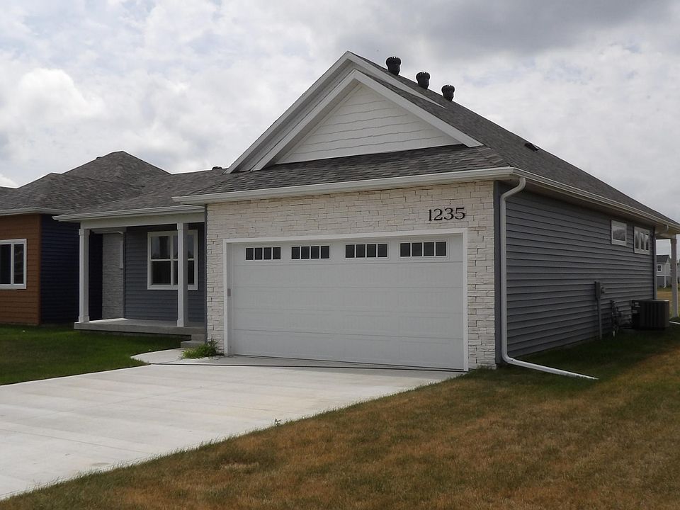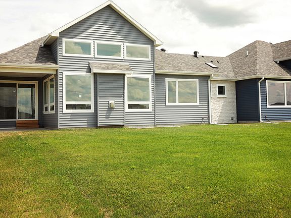 This home has it all including a view of the Cedar Point Golf Course. This home is host to a very open floor plan and has a modern feel. The kitchen is open to the living room and dining room with a huge, beautiful light colored Corian island along with white custom cabinets and walk in pantry. The living room is host to a gas fireplace, 15 ft ceilings and huge windows. The master bedroom offers an over sized walk in closet and private master bath, with his and her sinks and tile shower. The 2nd bedroom has french doors and amazing windows allowing tons of natural light into the room. Top the main floor off with a 2nd full bathroom and main floor laundry. If that was not enough for you, the basement is a blank slate that you can do whatever you would like with to make this brand new home even more yours. The basement is already stubbed for a bathroom and has 3 egress windows. Finish this home off with a covered patio and place it on a quite low traffic street. Call us today to see your new home with zero maintenance work for you!