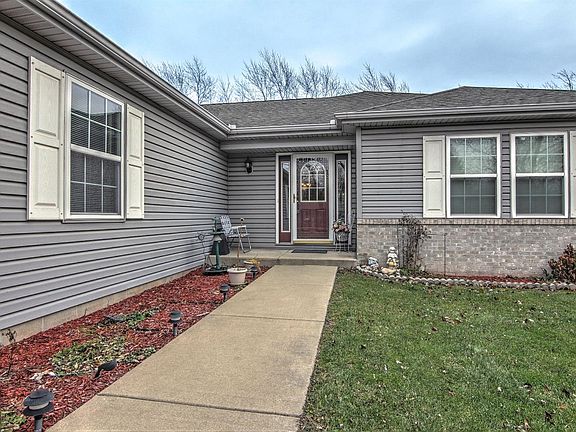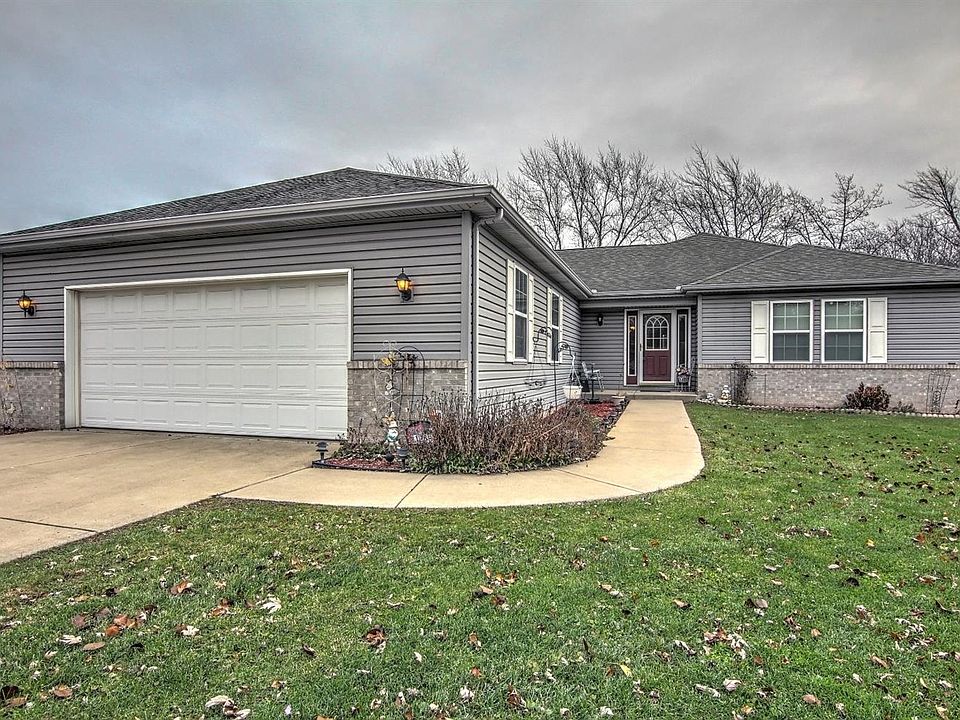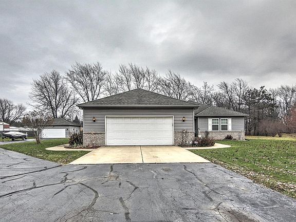 Spacious maintenance free split bedroom ranch with 3 bedrooms, 1.75 baths and 4 car garage space on just under 1 acre with city water and sewer! Almost 1700 SF in this open ranch on a crawl featuring large foyer open to great room with cathedral ceilings and French doors to 10 x 12 sun room, nice kitchen/dining area with oak cabinets & pantry, master bedroom features 3/4 bath, tray ceilings and walk-in closet, nice guest bath and 2 additional bedrooms, 10x09 laundry/mud room with door to 2.5 car attached garage, central air, 2.5 car detached garage is finished and heated, black top drive and more close to 80/94 and South Shore!