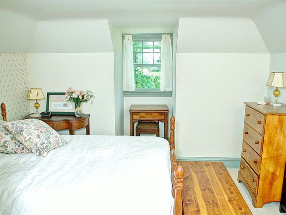 Wonderfully charming cape on a picturesque 1-acre lot in Methacton School District. A large circular driveway leads to a peaceful covered porch at the front of the home. The driveway also leads to an attached carport, a large paved area in the rear yard, and an oversized 3-car garage. The side door opens to a spacious eat in kitchen with 18" ceramic tile flooring, tile countertop, built-in shelves, and skylight. The dining room has a beautiful bay window and an antique chandelier. The living room also has a large bay window plus a fireplace with wood stove, built-in bookcases, and clear glass doors to the a pretty sunroom. The sunroom offers tile flooring, painted brick walls, abundant windows and access to a large paver patio with fantastic views of the backyard and adjacent farm fields. The master bedroom has glass doors to a private deck area, an adjacent study/sitting area, and direct access to the hall bath. A 2nd bedroom completes the main level. Upstairs, you'll find a spacious bedroom with dormered windows, a full hall bath, and abundant attic storage. The basement has a three finished rooms; the largest room being a family room with rich wood paneling and built-in shelves. A large unfinished area provides great storage. Many great updates yet boasting old world details such as crystal door knobs and arched doorways.