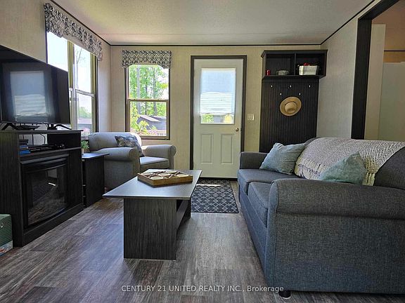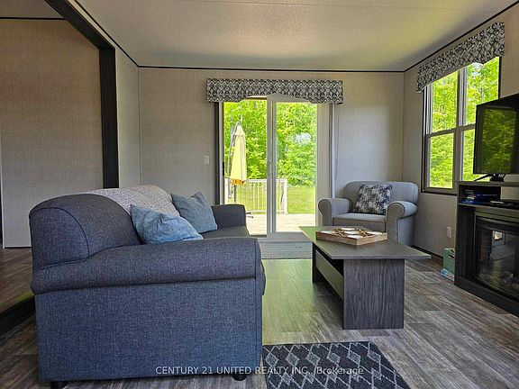 Welcome to Bellmere Winds Golf Resort on Rice Lake, where resort living meets relaxation! This 2020 Northlander Clearwater park model (36' x 12') offers open-concept living / dining and kitchen area, 2 bedrooms and the added bonus of a 12' x 12 addition and two large decks perfect for outdoor living and entertaining. You also have waterfront access to Rice lake. This pet-friendly resort offers a carefree lifestyle, the Resort amenities include: 18-hole Bellmere Winds Golf Club (membership for 6 people included in annual resort fees) with stunning lake views, two swimming pools, splashpad, beach, and water activities and boat slips (additional charge). It is a Family-friendly resort with many events designed for children. Nearby, enjoy hiking trails, farm-fresh markets, shopping, and excellent local dining. This well-equipped cottage comes with a propane furnace, hot water on demand, air conditioning, electric fireplace, full-size appliances, all furniture and contents. High-speed fibre internet is available. Occupancy runs May 1 to October 31. Its move-in ready, enjoy the 2025 summer season in your own vacation spot by the lake!
