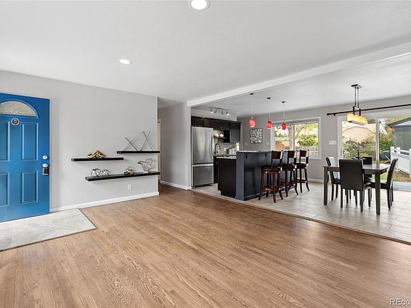 You must see this move-in ready Sixth Avenue, Broomfield dream home, within walking distance of Broomfield's Midway Park. This stunning property has been completely remodeled and boasts a wide-range of impressive features. Entering the home you immediately notice the solid hardwood floors installed throughout the home. The heart of this home is its well designed kitchen, equipped with a 5-burner gas range, all stainless appliances, and is complemented by a coffee/wine bar just around the corner, a wonderful walk-in pantry neatly tucked away in the adjacent dining room for all your storage needs. This home includes a large laundry room, with a utility sink, making cleaning duties a breeze that incorporates a walk-in closet, with built-in storage solutions for maximum organization. The bathrooms are equally luxurious. Offering a spa-like experience. All bedrooms have natural light and custom blinds installed, primary bedroom has a 7x12 walk in closet with built-ins. For car enthusiasts or those with hobbies, there’s a 2 1/2 car garage plus another 1/2 car space perfect for motorcycles, bikes, or hobby equipment. Outside, the custom front yard landscaping adds to the curb appeal, while the backyard oasis features mature trees, a cozy fire pit, and an oversized patio ideal for entertaining or relaxing evenings under the stars. Living at this Broomfield location puts one conveniently close to shopping, dining, scenic trails and blends suburban comfort with outdoor adventure seamlessly.